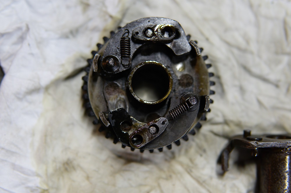 このA10はマグネトー点火ですが、点火時期は手動進角じゃなくて遠心ガバナのタイプ