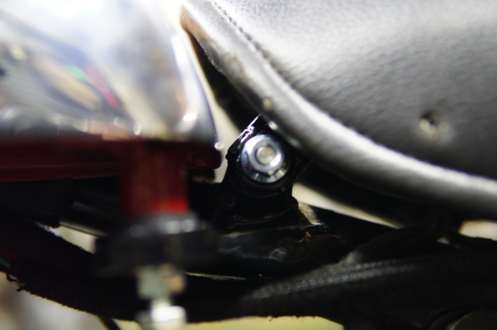 取付けにはタンクをちょこっと浮かせて、タンクとフレームの隙間をなんとか通して、そんで蓋とタンクの隙間からナット締めて