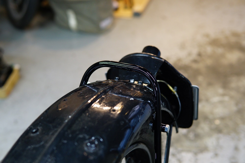 この部分はフェンダーステーではあるのですが、一番の用途はリアスタンドを上げる際に持つ取っ手となります