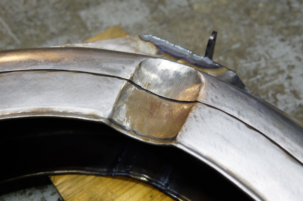 材質が悪いので本当は新しい鉄板でやったほうが作業が楽なのですが、フチの部分とか色々造形を考えると、元のを再利用が自然に仕上がります