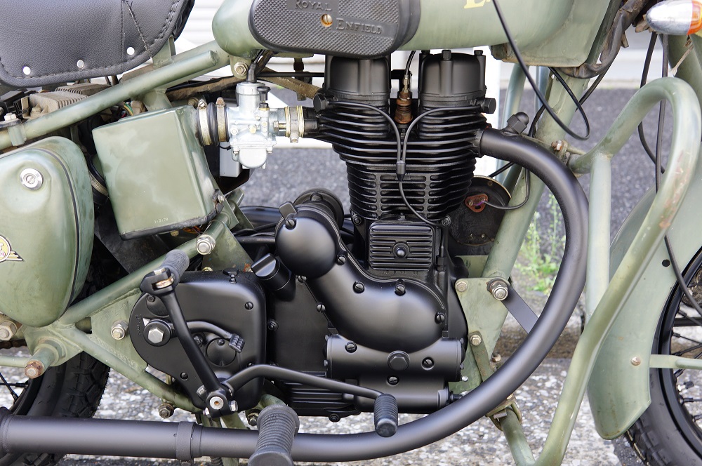 ロイヤルエンフィールド アイアンBULLETアーミー エンジンペイント 2026/04/19 ロイヤルエンフィールドのアーミー このモデルは未塗装のエンジンとホイールのモデルみたい エンジン、ホイール、マフラーをマットブラックにペイントして、イメージチェンジします アーミーなので、純正同様スポークからネジなども含めて丸塗り 可動部は塗らないでおきましたが、整備の際は絶対剥がれてきます ただまぁ、その剥がれてきた感じが似合うんですよね 少し経ったら擦れて剥がれて他の外装と馴染むでしょう ありがとうございました!