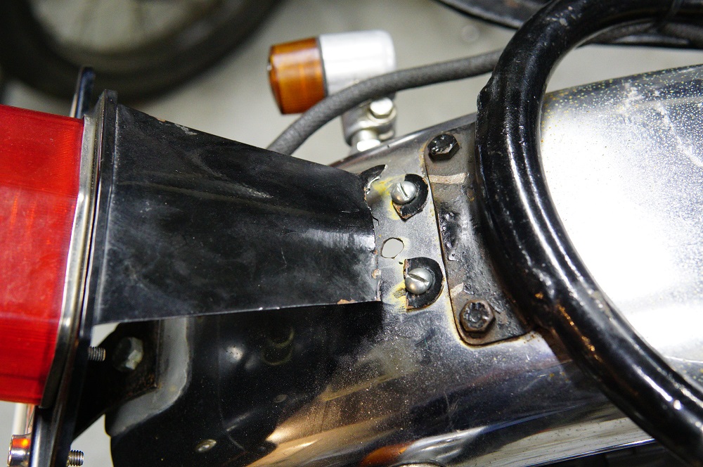 旧車は振動ブルブル大変。だがそれが良い 2026/04/28 アイドリングでも走ってても、常に振動ブルブル!それが旧車 エンジンの内部に振動を打ち消す物を追加したり、エンジンとフレームとの間にゴム挟んでみたり 色々な工夫をしながら、なるべく振動を消すように進化してきました ディスクブレーキなのに ドラムブレーキ用のレバー! 機能的に意味は無い、けどカッコ良い。それでいい 振動があるので、末端に付いてる肉薄板は折れちゃう 直す! 直った!これでいい