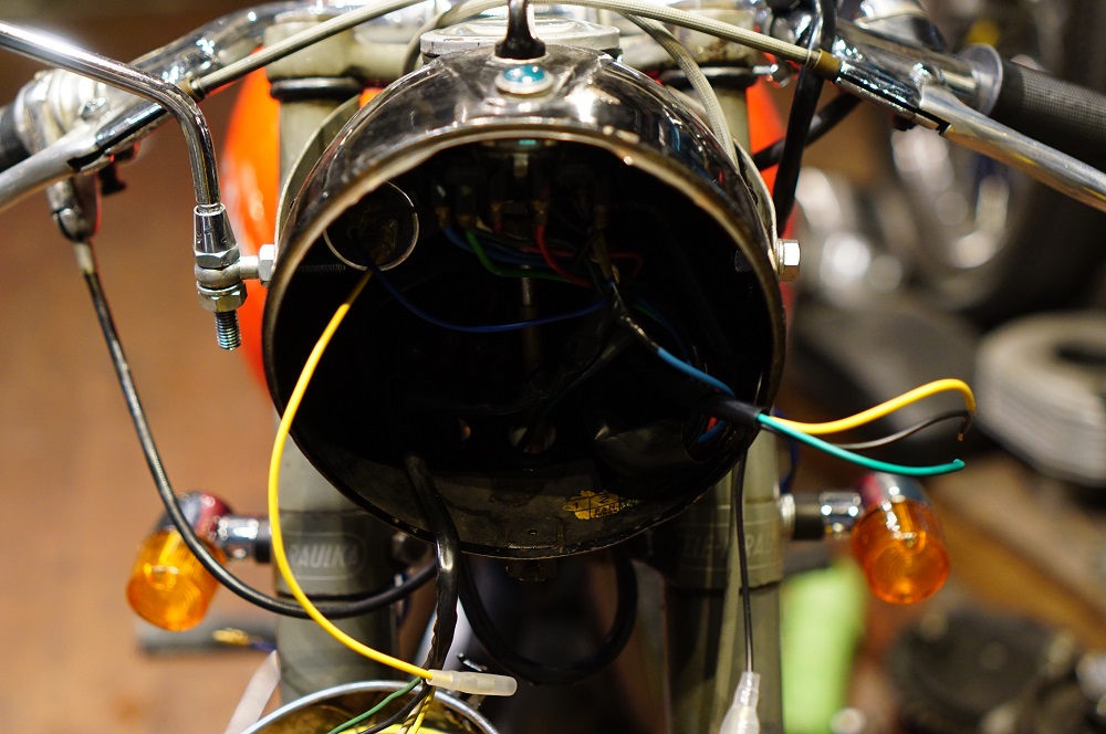 ジレラ150 ウインカー取り付け 2015/11/21 委託販売のジレラ 年式的にウインカーが有りません。普通に乗るには不便だね、という事でウインカーを新規で設置します。 ライトケース内にウインカーリレーを入れて、配線を新規に製作 これで気兼ねなく曲がり放題!気を付けてお乗りください、ありがとうございました! オイル交換でご来店のエンフィールド エレメントも交換です。 いつもいただくドーナッツ・・・すみません、ありがとうございます!
