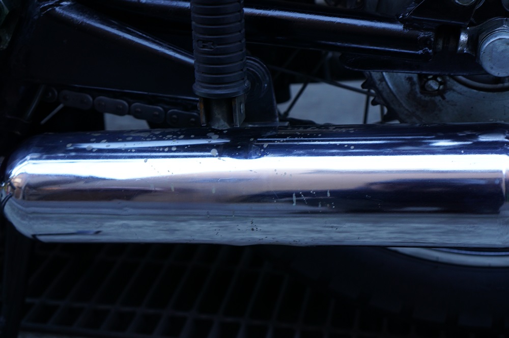- いわゆる硫酸パンチをくらっている左マフラー。Wシリーズの定番です・・・ 再メッキ承ります