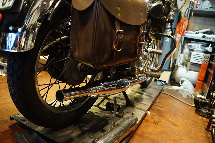 スウェプトバックタイプのエキゾーストパイプに純正ショートサイレンサーを組み込みたいとの事で作業させていただきました!