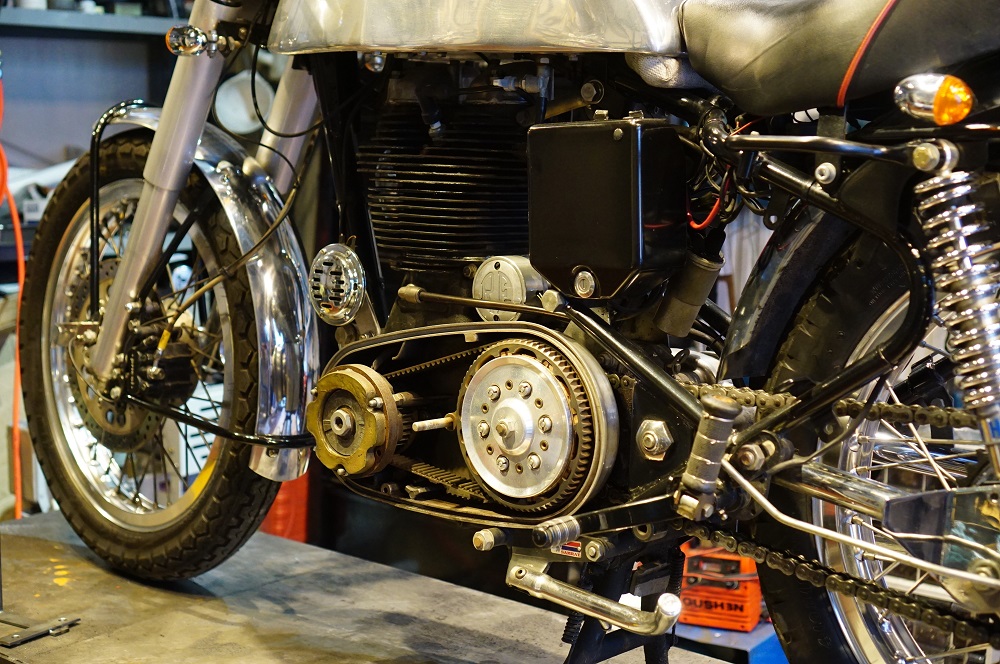 ロイヤルエンフィールド 乾式クラッチ修理 2015/10/28 ロイヤルエンフィールドの乾式クラッチの修理です ロイヤルエンフィールドのアイアンモデルのは、チューニング用としてベルトドライブの乾式クラッチがあります。 かっけぇ! 最近クラッチがどうも調子悪いようです。分解してみました 回転が重い症状がありましたが、原因はココ。中のベアリング部分が重いようです グリスが切れてボソボソに・・・ クラッチセンターには若干の痛みが出ています。とりあえずボールを交換してどうなるか! 現在ボール取り寄せ中ですので、少々お待ちを。