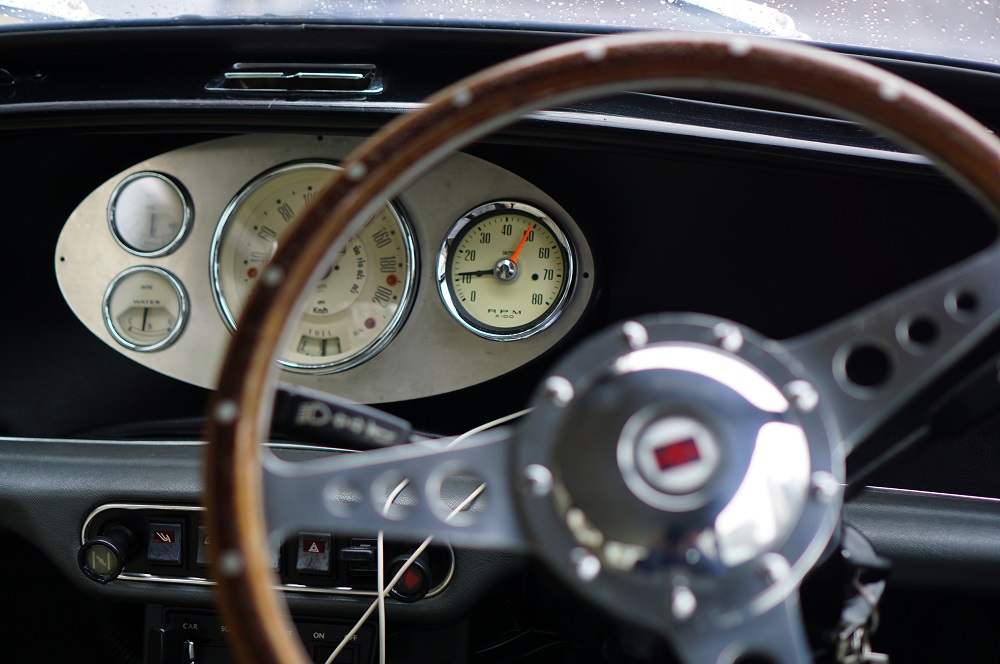 俺が前乗ってたミニと同じ、センターメーターにモトリタのウッドステアリング