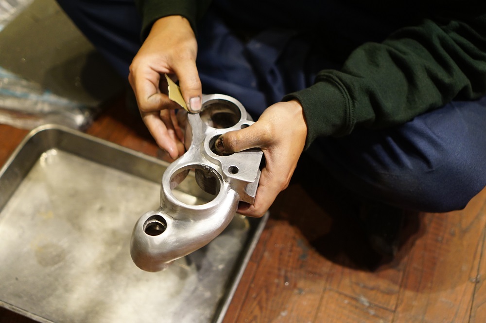 ホットロッドショーに向けて磨いております! 2015/11/16 12月6日のホットロッドショー、なるべく綺麗にすべく頑張っています!が、予算が尽きましてアルミ部分は手バフで。 今日は知人の旧車屋さんが来てくれて、お手伝いを・・・ 恥ずかしいからか、顔出しNGです。ありがとうございます! 御注文頂いているタイヤ、続々入荷です!TT100ばっかり! そして差し入れをいただいちゃいまして・・・ありがとうございました!